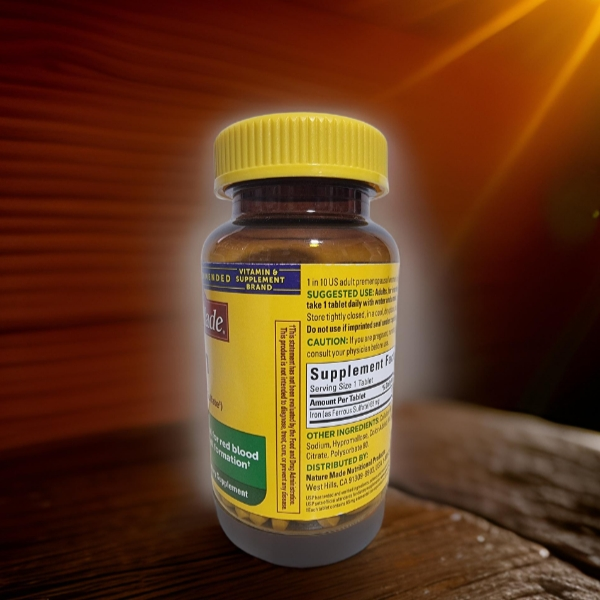 Embark on a healthier lifestyle with Iron 65 mg, designed to address iron deficiency and support daily nutrient needs. This potent supplement aids in hemoglobin production, crucial for oxygen transport in the body. Crafted with care from natural ingredients, it’s free from synthetic additives and gluten. Each tablet contains 65 mg of elemental iron, equivalent to 325 mg of ferrous sulfate heptahydrate. For adults combating iron deficiency, one daily tablet with water and a meal is recommended.